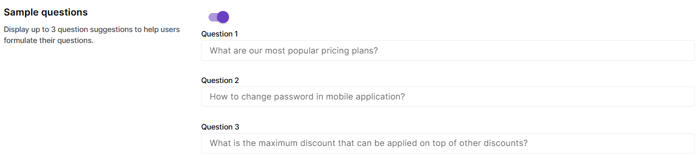 Provide up to 3 sample questions to help users start their first conversation with the Agent.