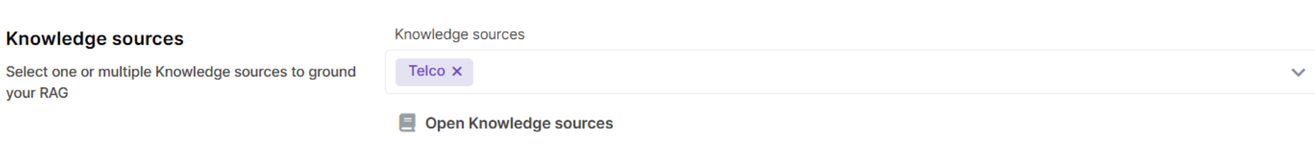 This is the critical setting that you are prompted to configure when you are creating a new RAG Tool. This may be one or multiple Knowledge Sources for the LLM to ground its response when answering users’ questions.