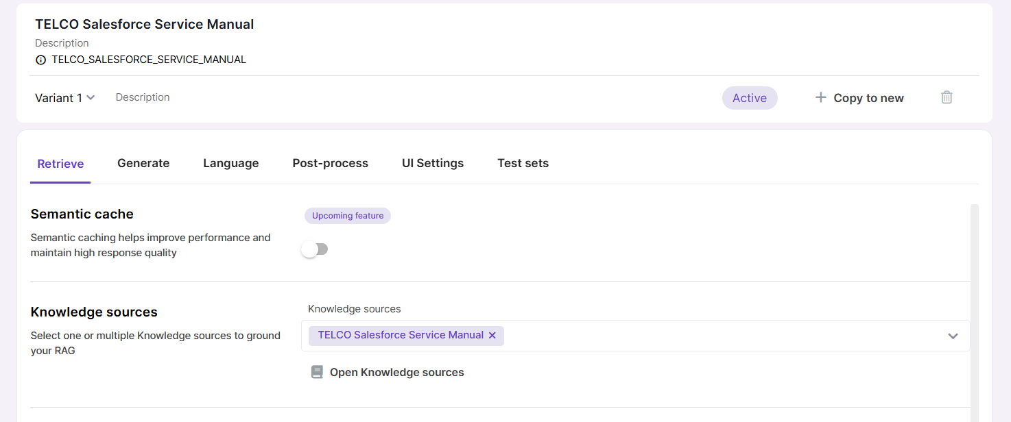 Knowledge Sources store your data in form of vector embeddings, enabling semantic search and grounding LLM responses in trusted, curated datasets.