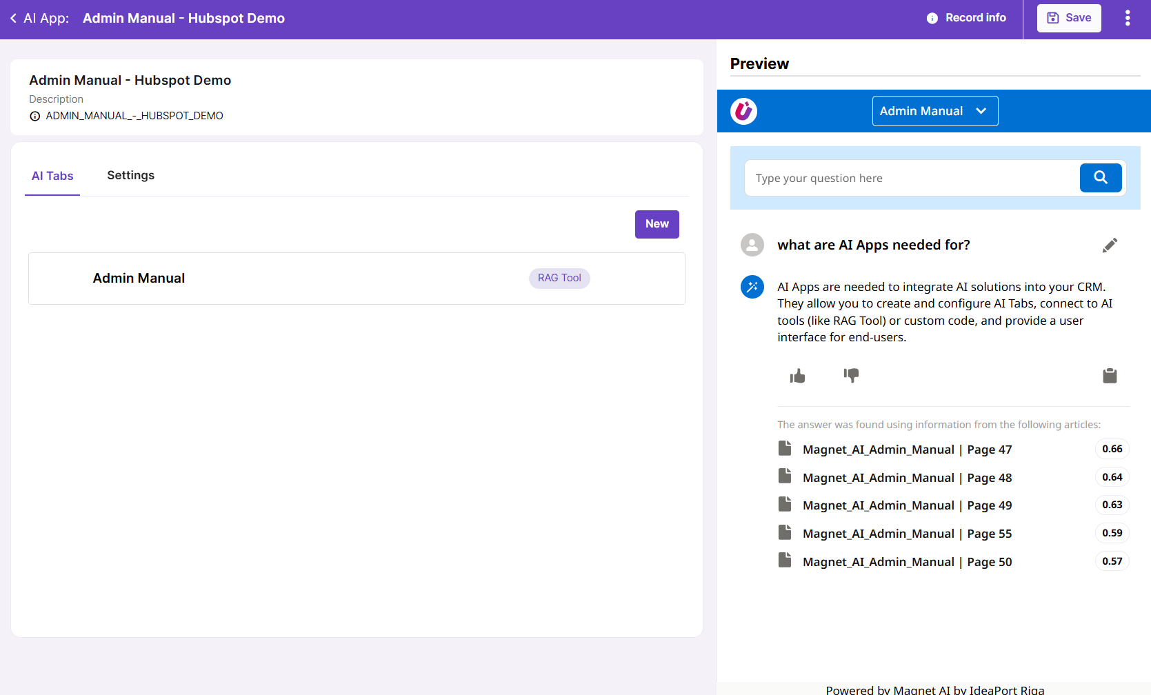 AI Apps provide the fastest way to deliver AI features configured in Magnet AI to end users. These are UI components that allow admins to assemble AI features together in a no-code way.