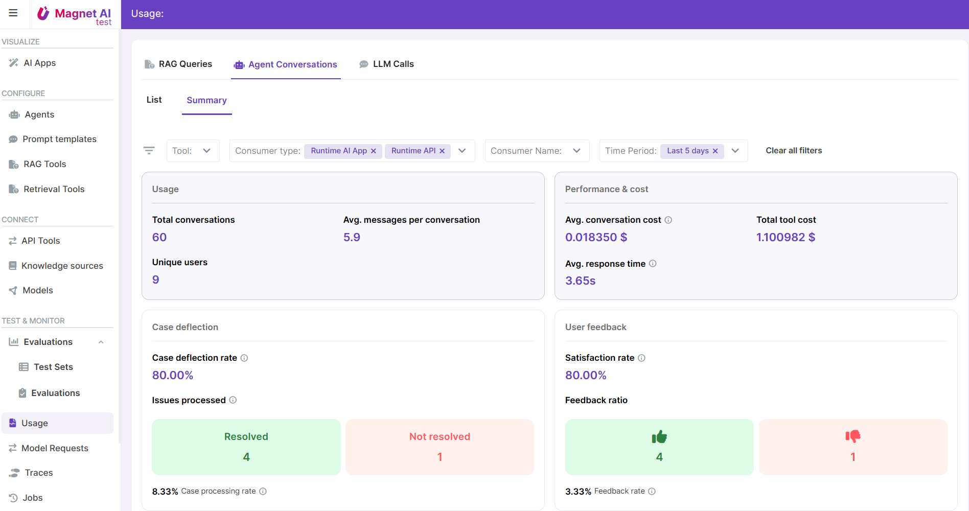 Magnet AI provides multiple reports and dashboards for Gen AI tool monitoring.