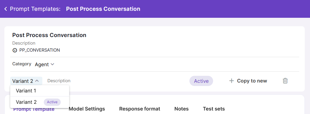 Currently, variants are supported by Prompt Templates, RAG Tools, API Tools, and Agents.